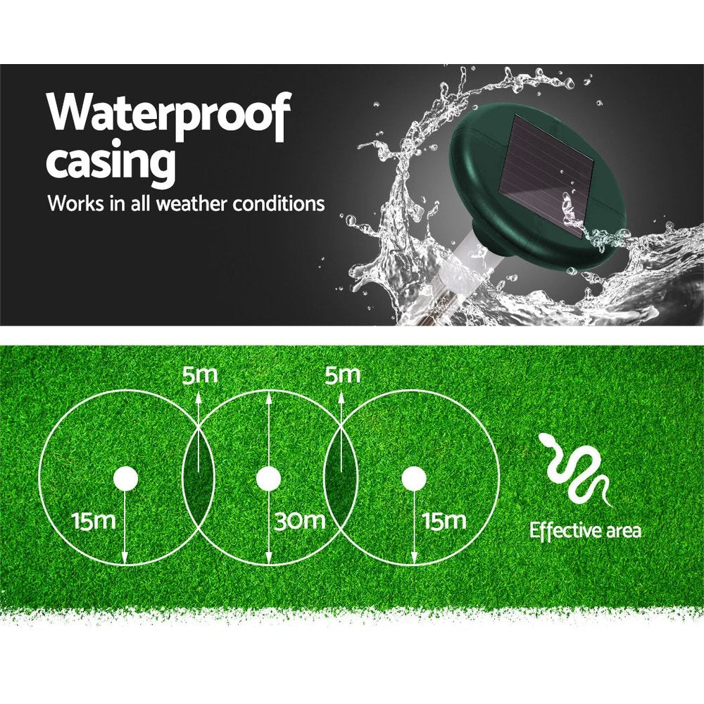 10X Solar LED Snake Repeller Multi Pulse Plus Ultrasonic Pest Rodent Repellent