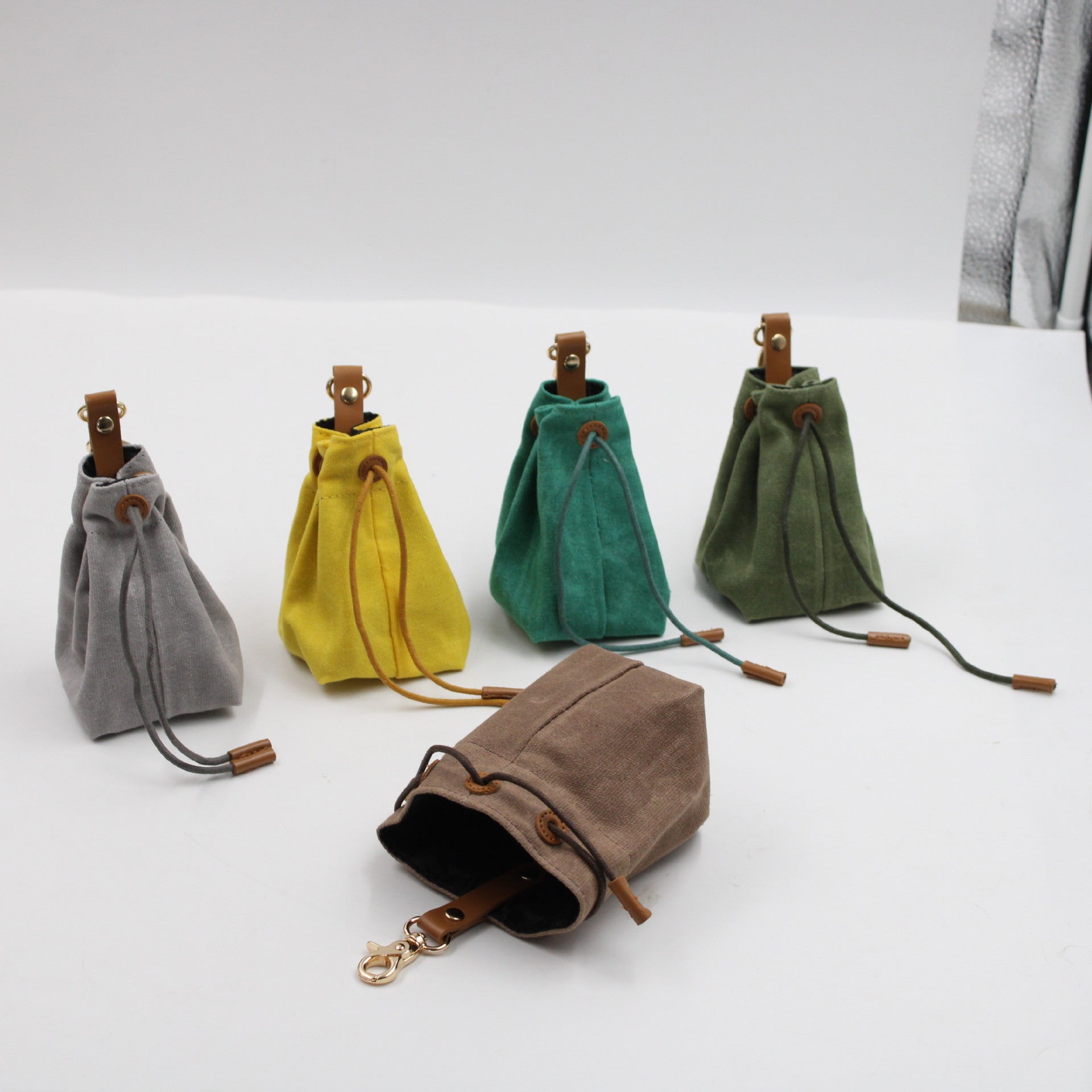 2-PCS Dark green Clip-On Canvas Dog Treat Pouch - Portable Drawstring Bag for Training & Walks