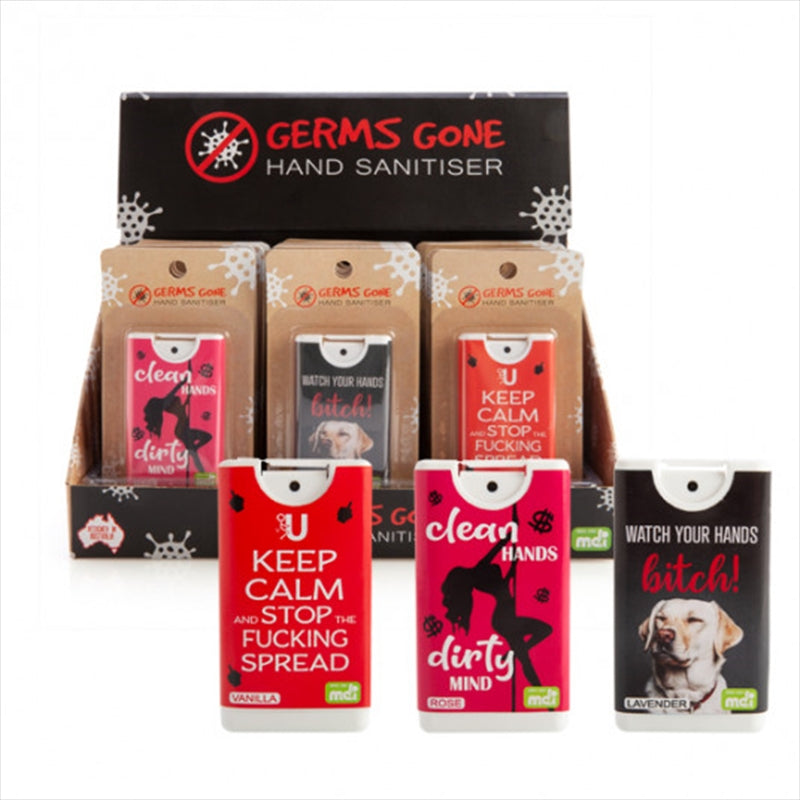 Keep your hands fresh and clean with the Germs Gone hand sanitiser spray! This compact sanitiser has a slim, flat design about the size of a credit card - great for pockets and tiny bags. Its spray function prevents spillage and releases just the right am