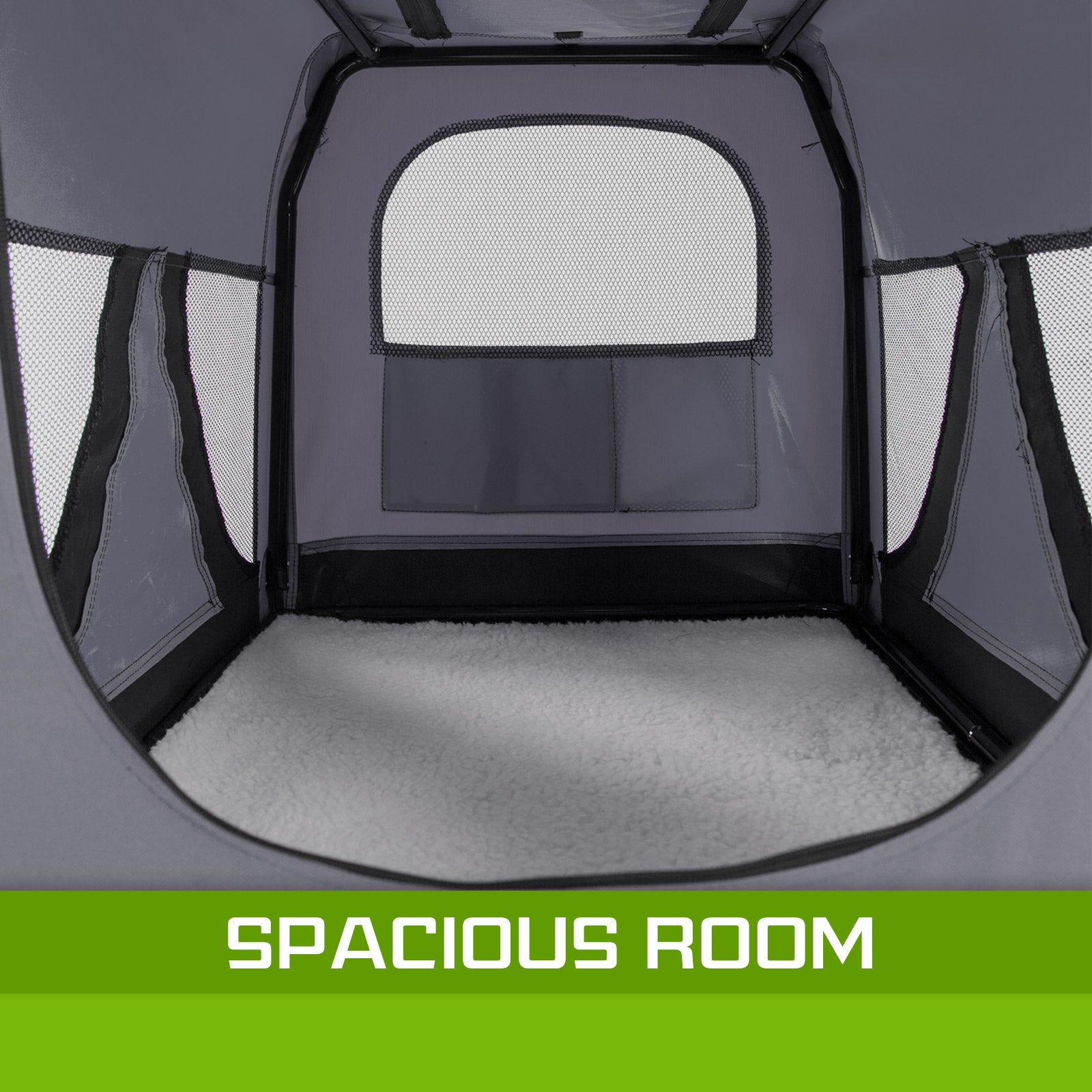 - Mesh windows to improve ventilation and offer comfort for your pet